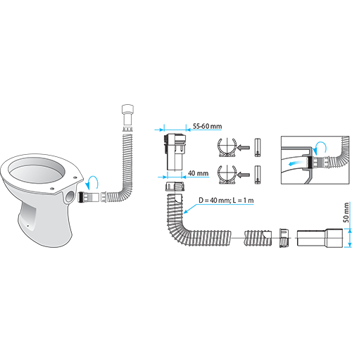 Ovaj tip veza za wc šolju odlikuje nov način povezivanja veze i vodokotlića. Fleksibilna veza služi za spajanje završetka cevi vodokotlića i WC šolje.