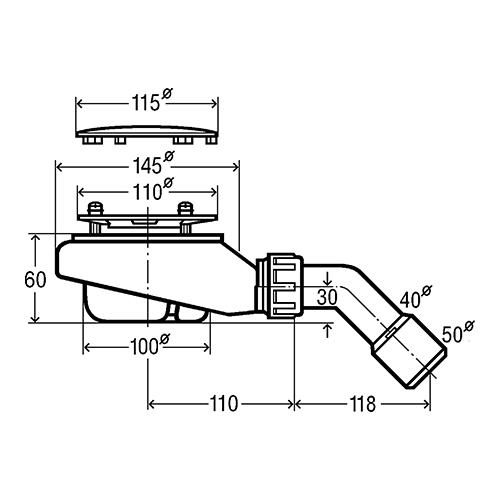 Odvod - Tempoplex. Visina izrade 60 mm, hromirani poklopac, sifon se može izvaditi, odvodno koleno 45°